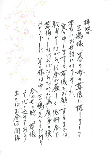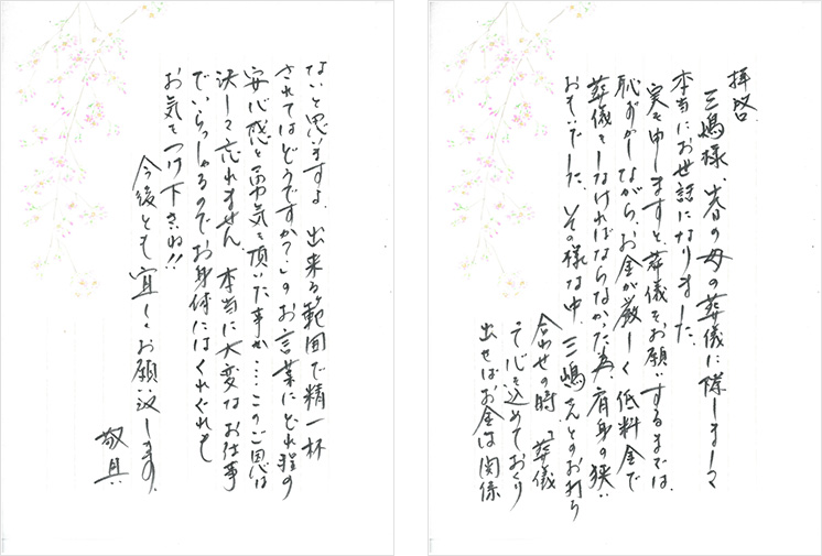 福岡家族葬市民葬祭をご利用頂いたお客さまから、ありがたいお言葉を頂きました。 お客さまのご了承を得て、一部ご紹介します。